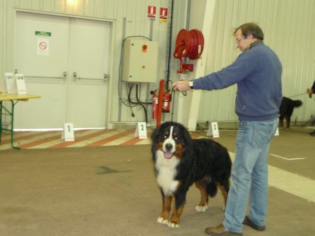 classe jeune mâles. Sujet un peu fort pour son âge. Bonne tête de mâle. Exc équilibre des couleurs, Exc DCC. museau noire gauche pigmentation non terminée, Exc ossature, Tb pieds et aplombs, Bonne arr main. démarche de jeune pas encore bien discipliné.